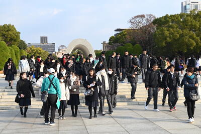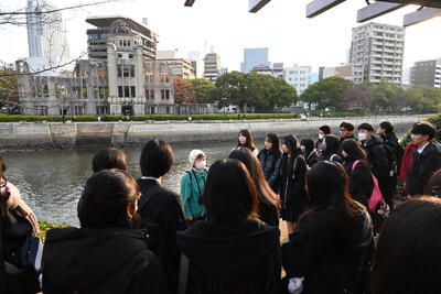 復興した広島の姿と80年前に同じ場所で実際に起こった出来事を重ね合わせた生徒達は、戦争と核兵器と平和について深く考えを巡らせたようでした。