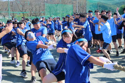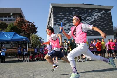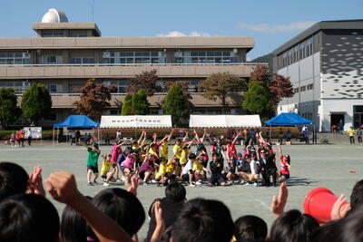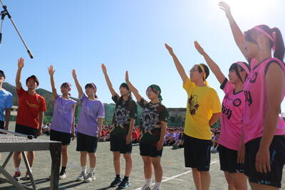 生徒会役員や実行委員会が中心となって準備を進めた様々な競技には、先生チームも参戦し当日は大いに盛り上がりました。また、各部活動による「本気(ガチ)リレー」と趣向を凝らした「パフォーマンスリレー」、そして有志による応援合戦は学校全体を大いに沸かせました。